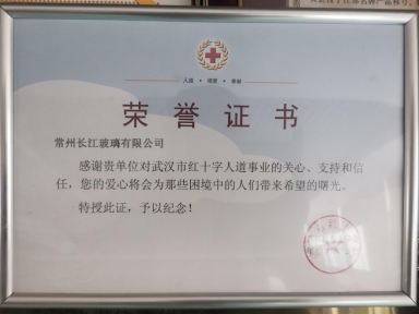 2020年2月2日,常州长江玻璃有限公司向武汉市红十字会捐款50万元,用于抗击新型冠状病毒疫情防控工作。