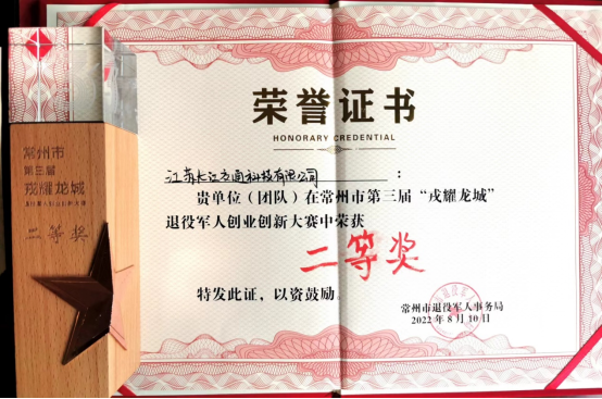 江苏长江交通科技有限公司荣获常州市退役军人创业创新大赛二等奖,新北区退役军人创业创新大赛一等奖,并被推荐参加江苏省决赛!